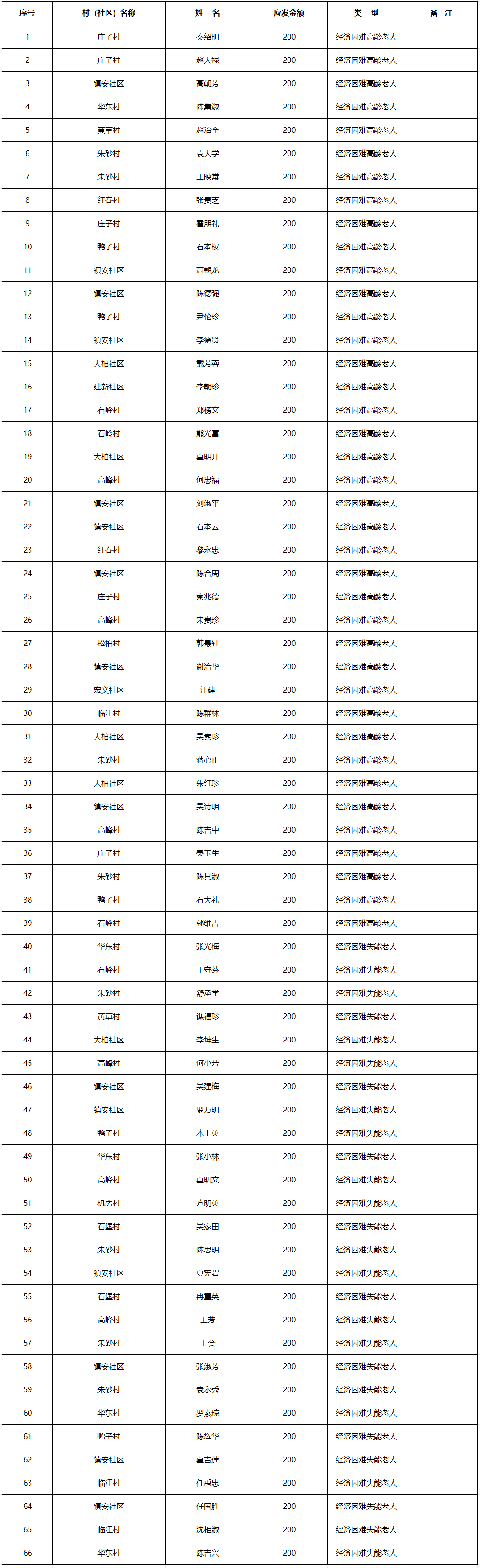 涪陵区义和街道2025年9月经济困难的高龄失能老年人养老服务补贴发放花名册