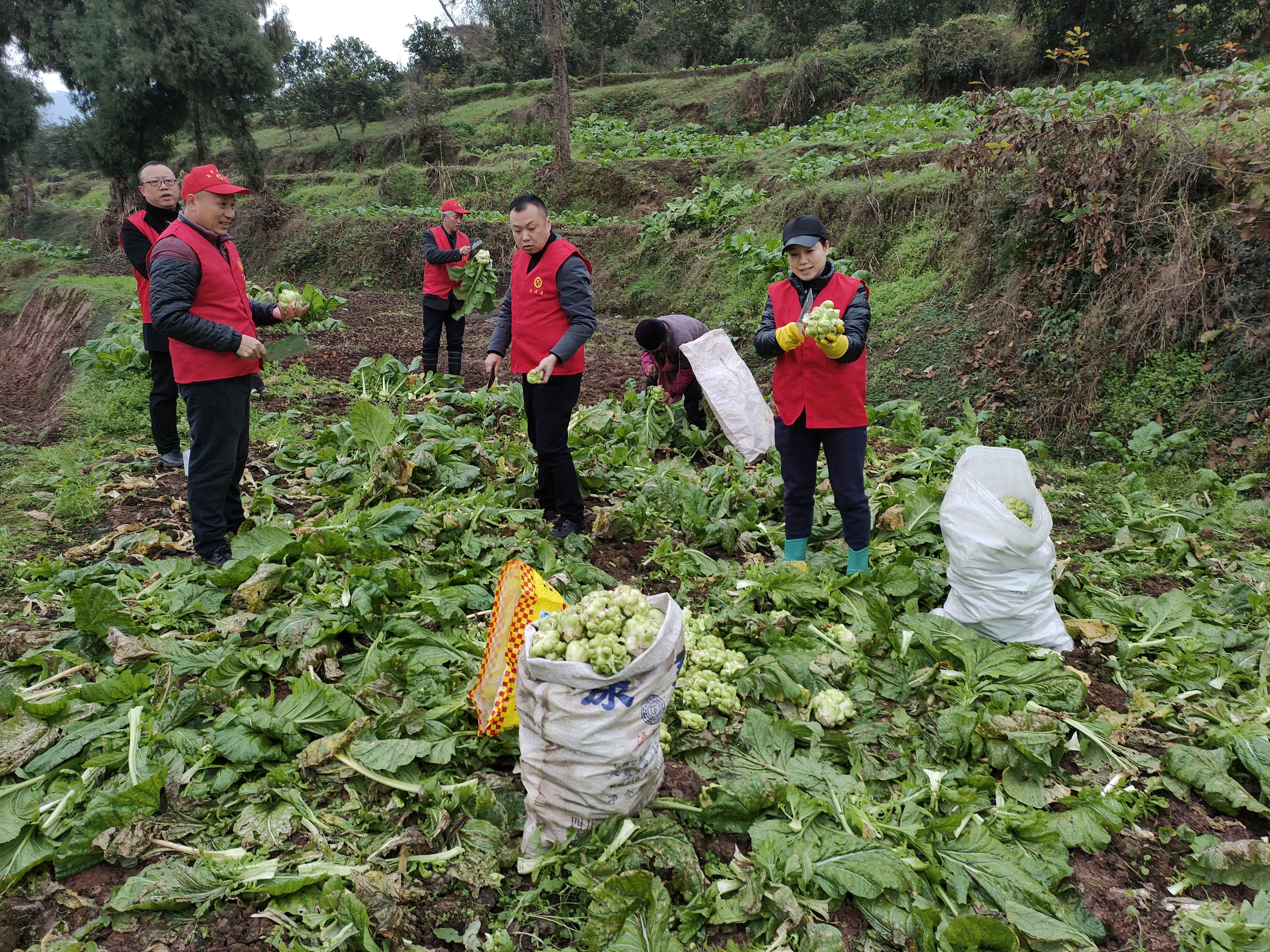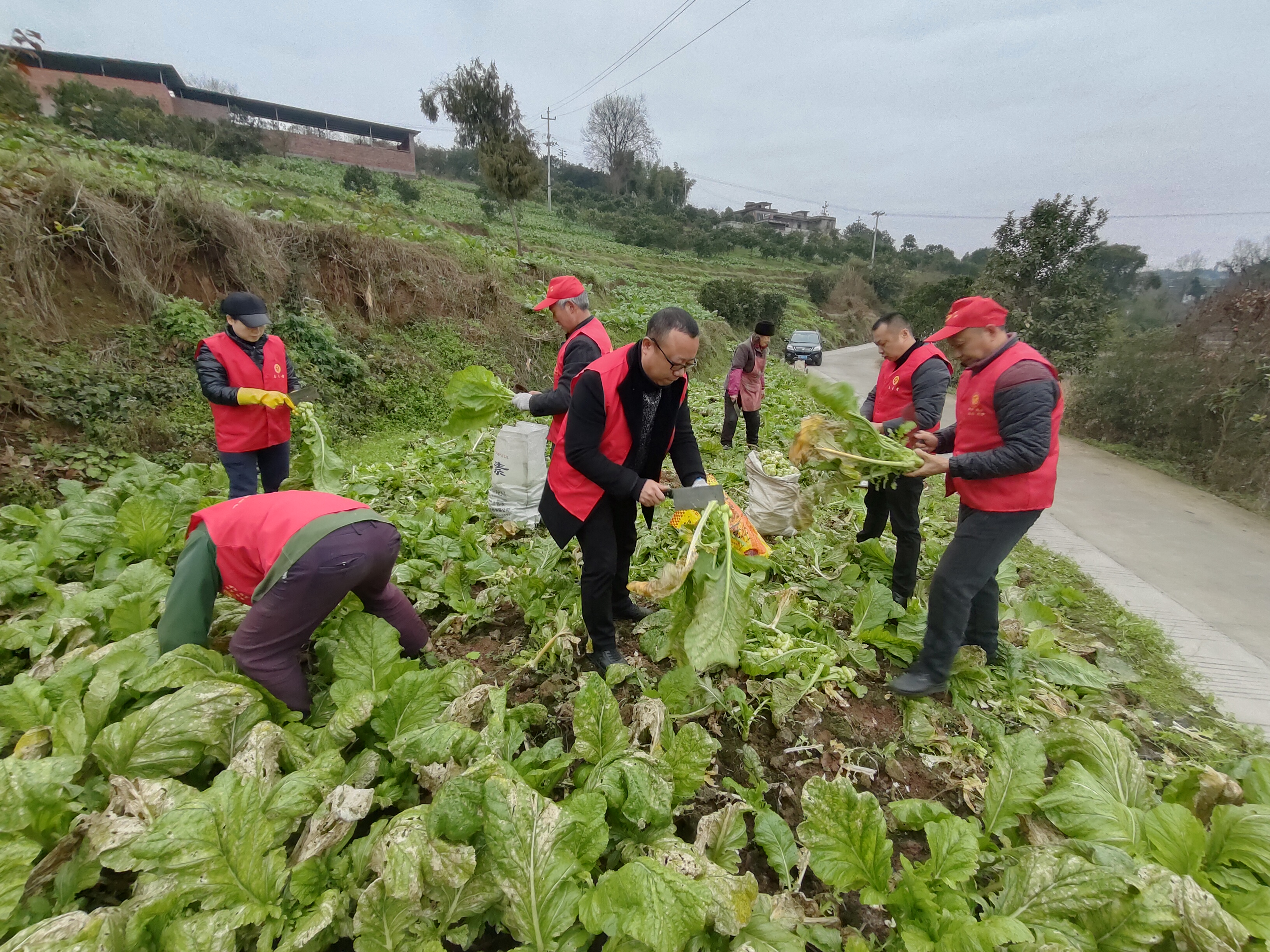 又到一年榨菜收割季,田间地头一派忙碌景象。这几天,在义和街道朱砂村的榨菜地里,正在忙碌收割榨菜的低保户王映川看见一批身穿红马甲的志愿者。只见他们自带工具,有的负责清理枝叶,有的负责装袋,干得热火朝天。这些忙碌在绿色田野间的红色身影,正是朱砂村驻村干部及村支两委们。