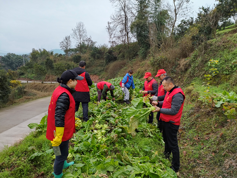 “多亏了有他们帮忙,今年榨菜可以早点割完,减少了很多损失。”王映川感激地说道。今年他们家种了3亩榨菜,但天公不作美,受去年强寒潮天气影响,今年榨菜产量大幅下降,收成减半,而近期连绵的阴雨天气也会对已成熟的榨菜品质产生影响,必须抓紧时间抢收止损。对家中缺少劳动力的他来说,志愿服务队的到来无异于雪中送炭。