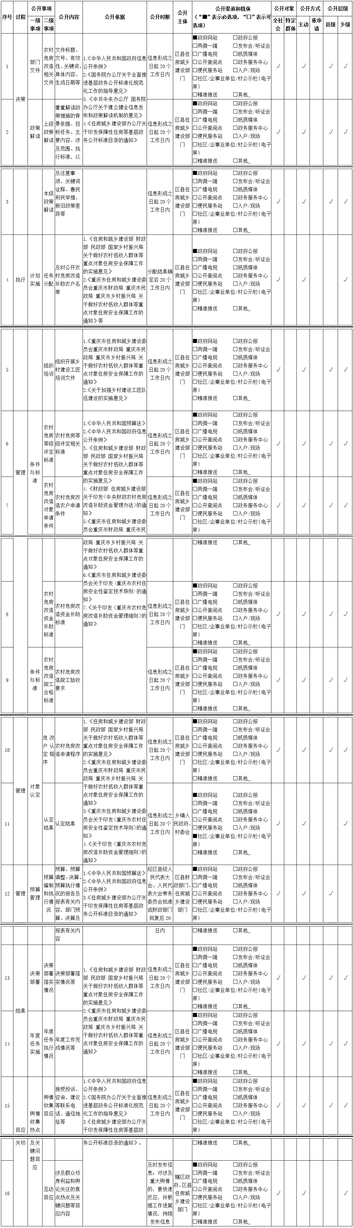 重庆市涪陵区增福镇农村危房改造领域基层政务公开标准目录(2025年版)