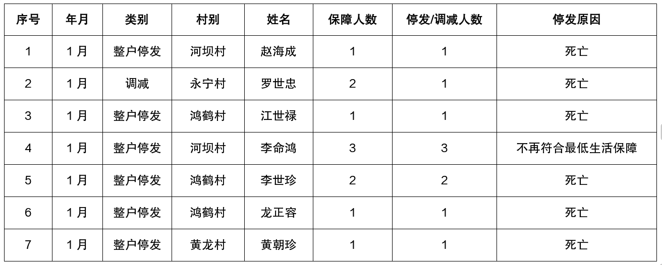 涪陵区增福镇2026年1月城乡低保停发人员名单