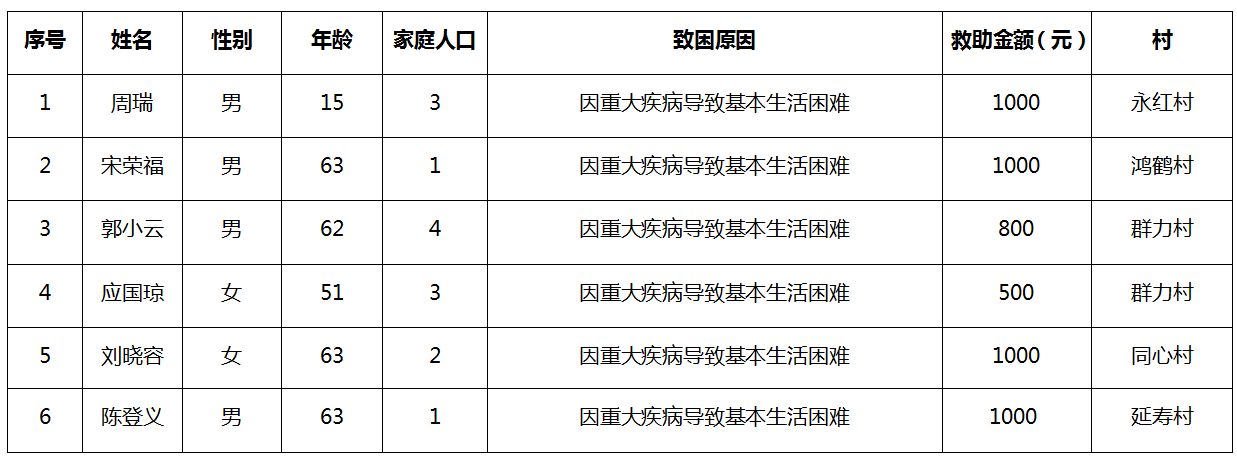涪陵区增福镇临时困难救助2025年9月份台账