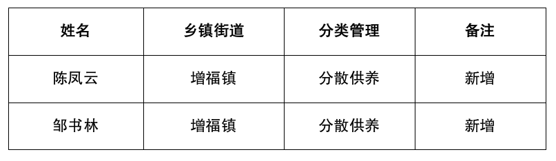 涪陵区增福镇2025年12月特困人员新增公示