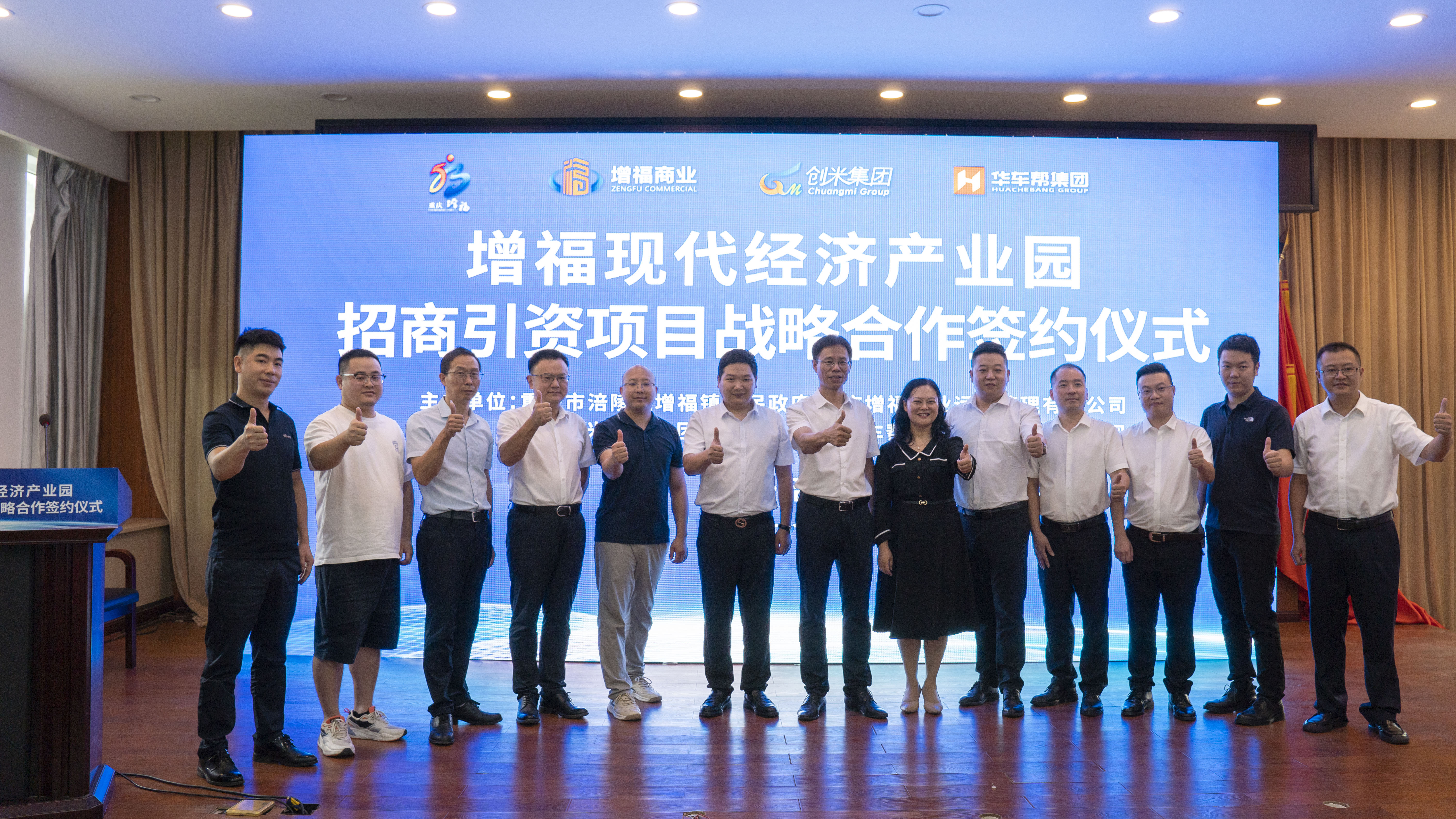 7月25日上午,由涪陵区增福镇人民政府、重庆增福商业运营管理有限公司、重庆创米科技集团有限公司、重庆华车帮科技集团股份有限公司联合举办的增福现代经济产业园招商引资项目战略合作签约仪式在增福镇举行,来自增福镇人民政府、企业代表以及9个村100余名党员干部、职工见证了此次签约活动。