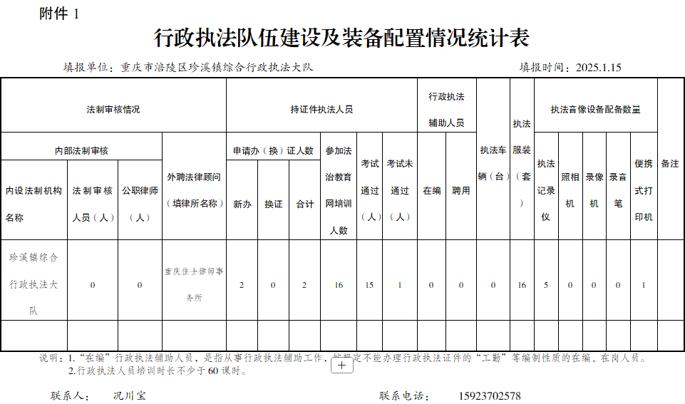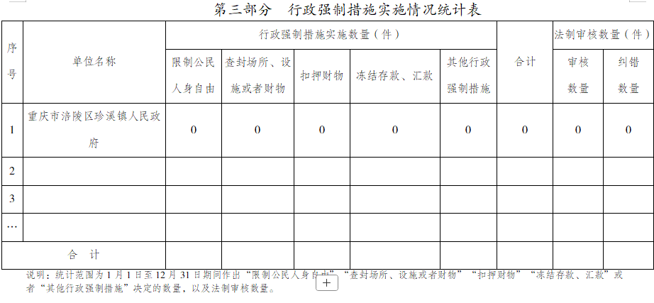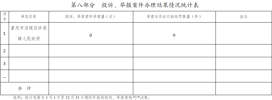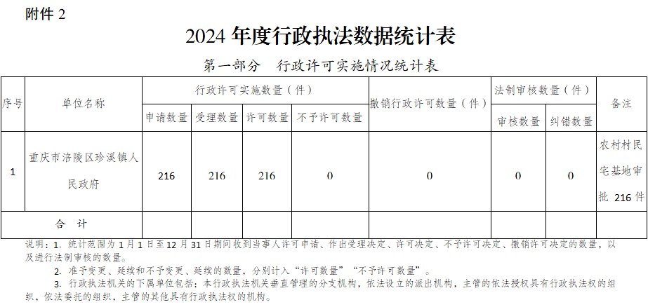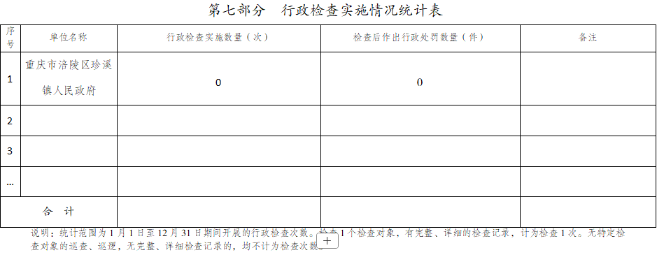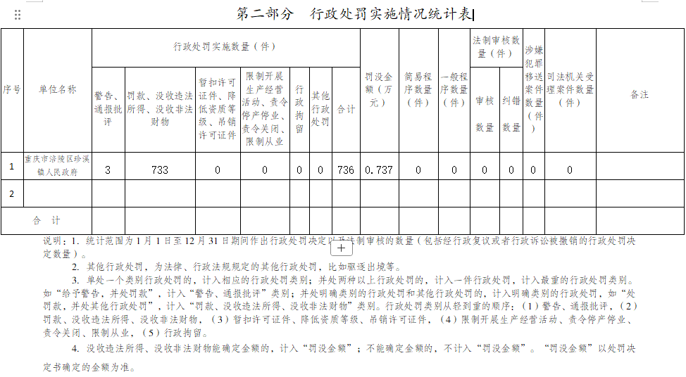 涪陵区珍溪镇人民政府2024年度行政执法数据公示