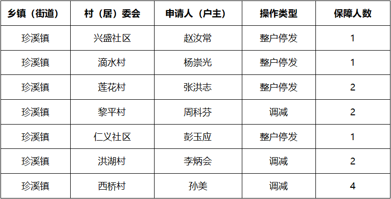 涪陵区珍溪镇2025年11月低保人员调减、停发公示