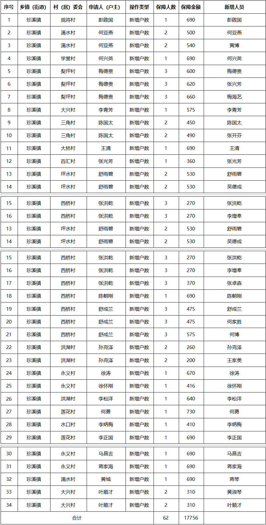 涪陵区珍溪镇2025年12月低保人员新增公示