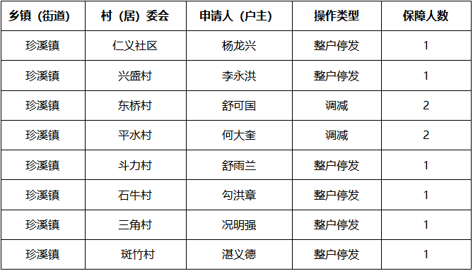 涪陵区珍溪镇2025年12月低保人员调减、停发公示