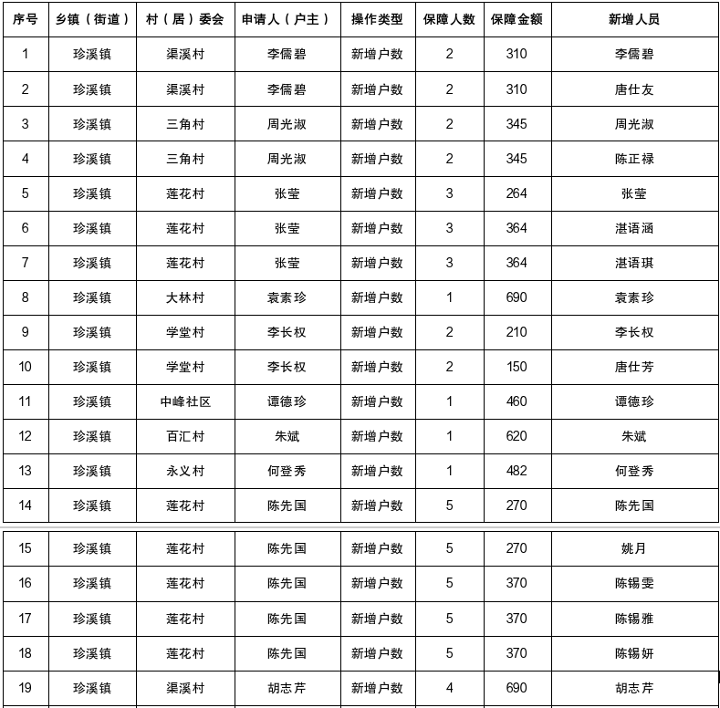 涪陵区珍溪镇2026年1月低保人员新增公示