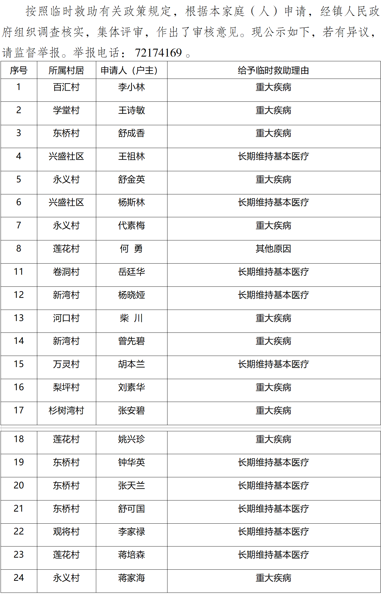 涪陵区珍溪镇2025年11月临时困难救助公示