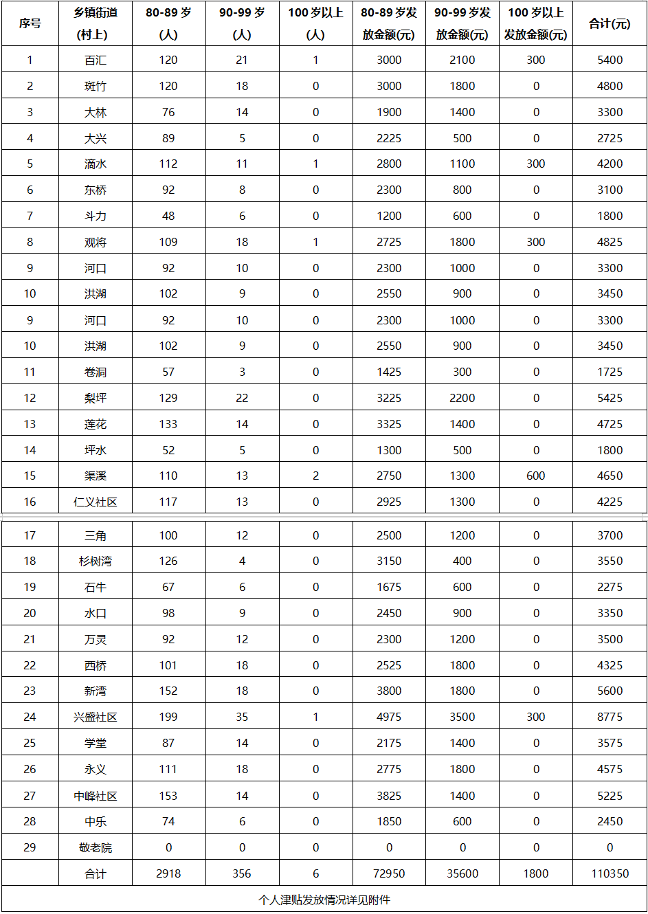 涪陵区珍溪镇2025年10月高龄津贴发放情况