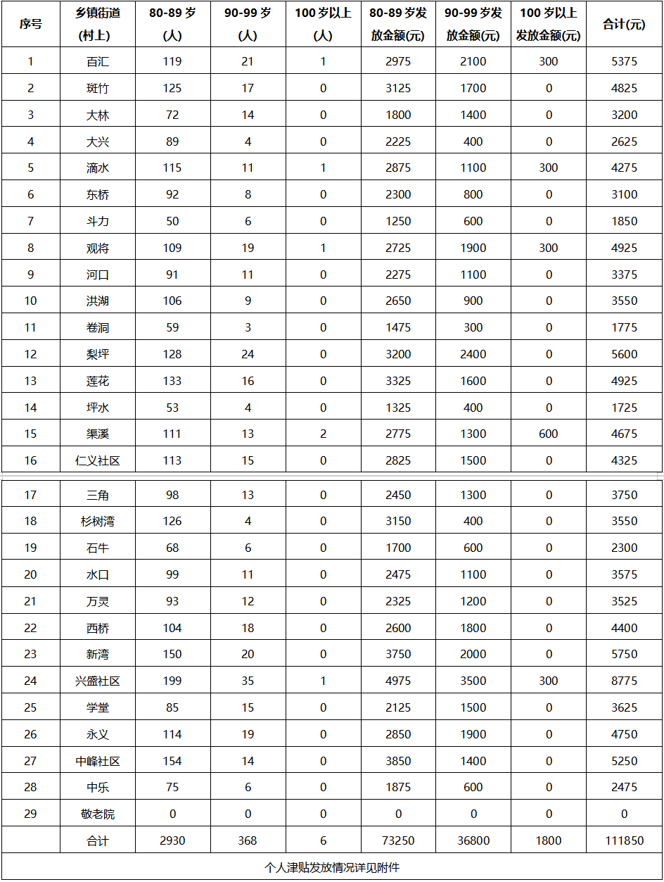 涪陵区珍溪镇2025年12月高龄津贴发放情况