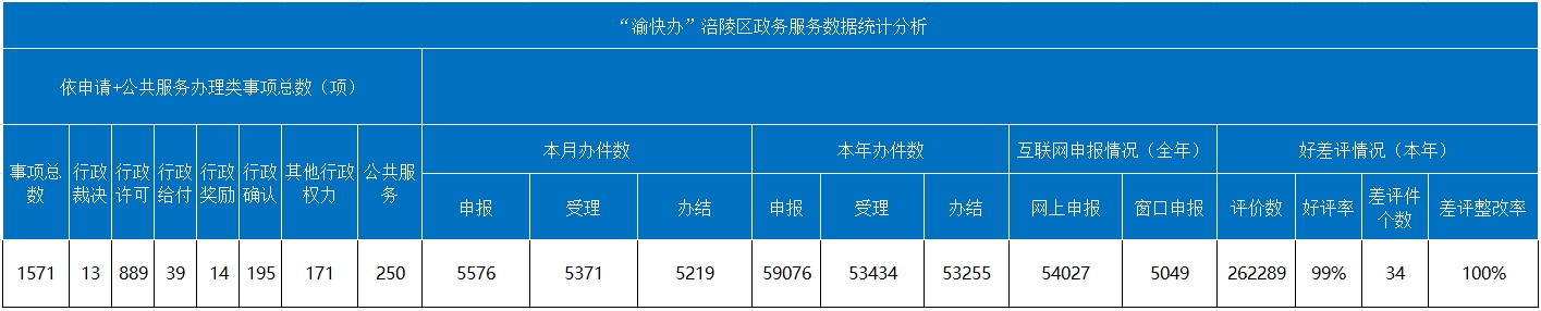 “渝快办”涪陵区政务服务数据统计分析