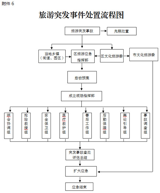 (6)审定旅游突发事件宣传报道内容和发布突发事件信息;决定并宣布应急救援结束,解除应急状态。