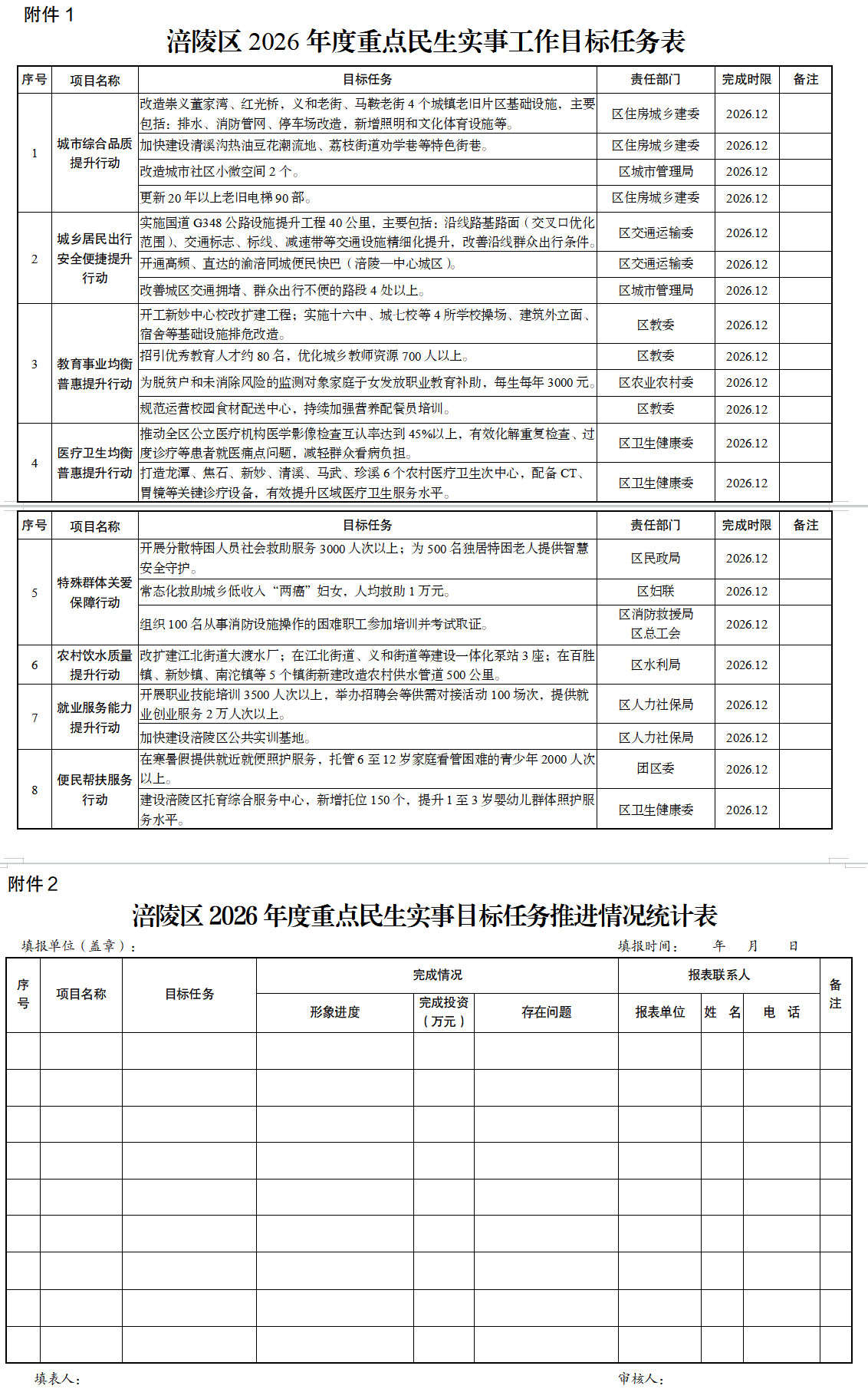 附件:1.涪陵区2026年度重点民生实事工作目标任务表