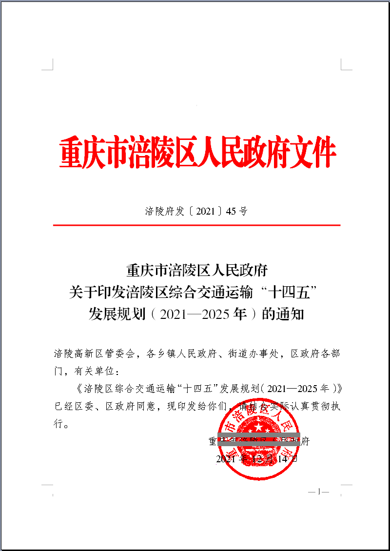 重庆市涪陵区人民政府 关于印发涪陵区综合交通运输“十四五” 发展规划(2021—2025年)的通知