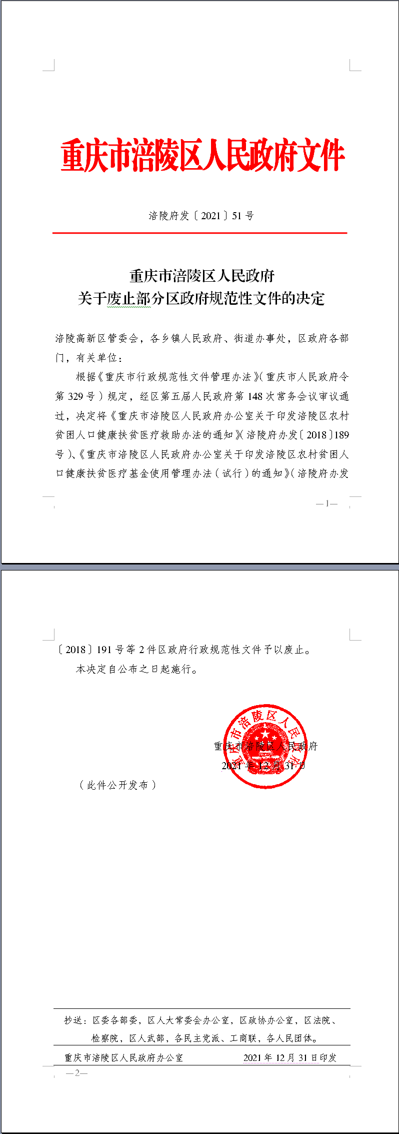 重庆市涪陵区人民政府 关于废止部分区政府规范性文件的决定