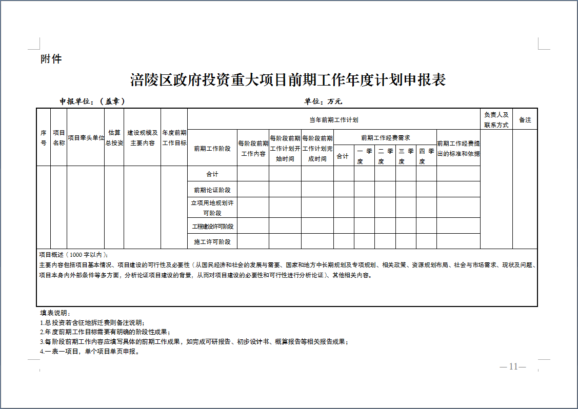 重庆市涪陵区人民政府 关于印发重庆市涪陵区政府投资重大项目前期工作管理细则(试行)的通知