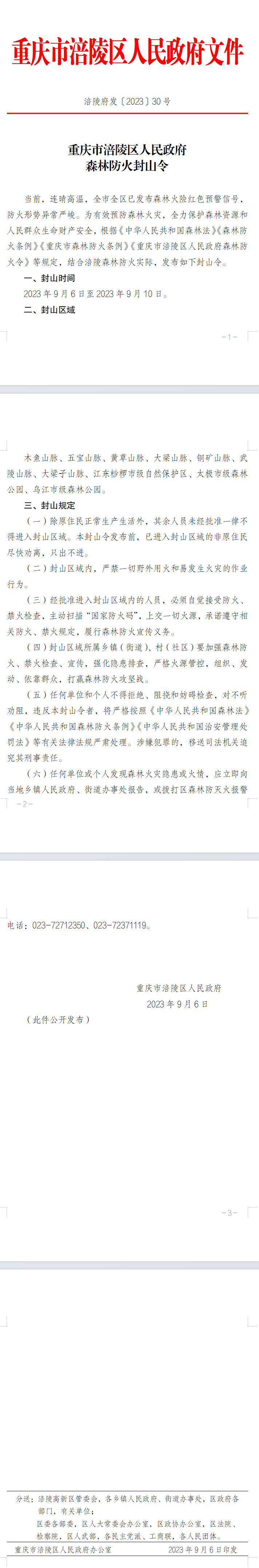 重庆市涪陵区人民政府 森林防火封山令