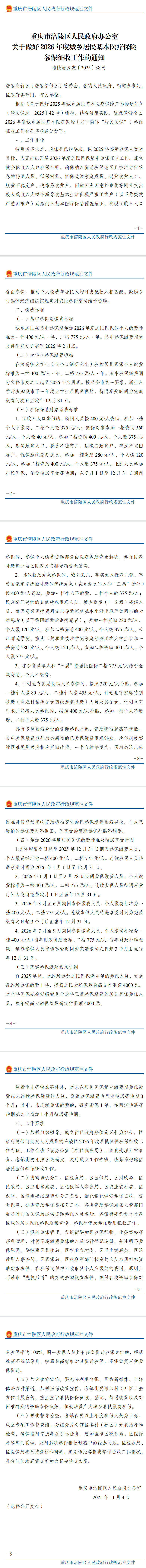 重庆市涪陵区人民政府办公室 关于做好2026年度城乡居民基本医疗保险参保征收工作的通知
