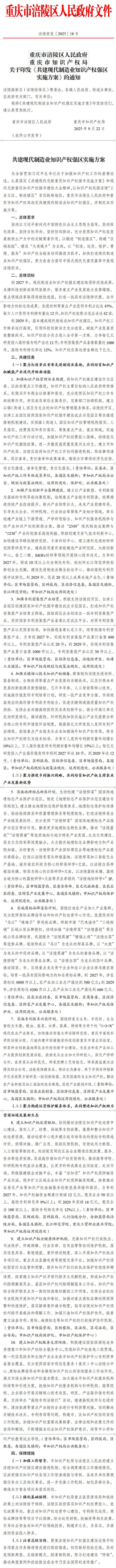 重庆市涪陵区人民政府 重庆市知识产权局 关于印发《共建现代制造业知识产权强区实施方案》的通知