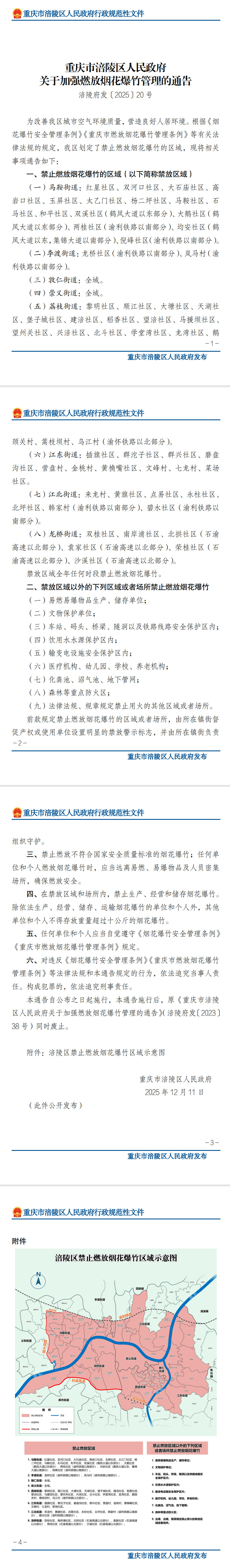 重庆市涪陵区人民政府 关于加强燃放烟花爆竹管理的通告
