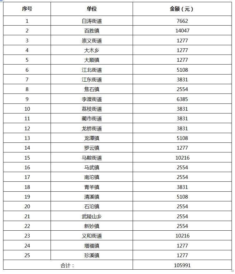 2022年1月涪陵区孤儿保障补贴发放汇总表