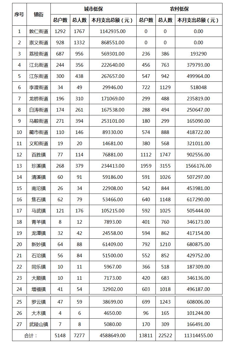 2026年2月涪陵区城乡居民最低生活保障金发放汇总表
