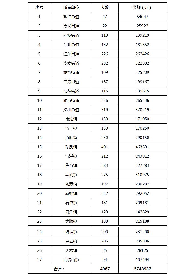 2026年2月涪陵区特困人员救助供养补贴发放汇总表
