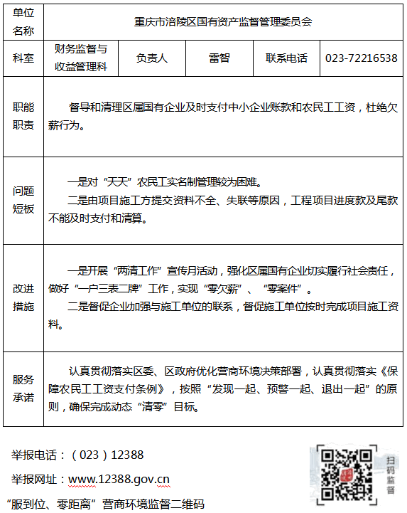 重庆市涪陵区国有资产监督管理委员会“四晒四治”监督卡