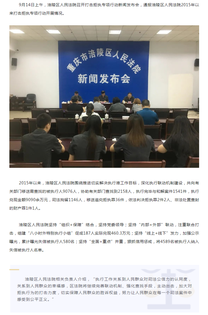 新闻发布 | 7年来,涪陵有4589人被纳入失信被执行人名单