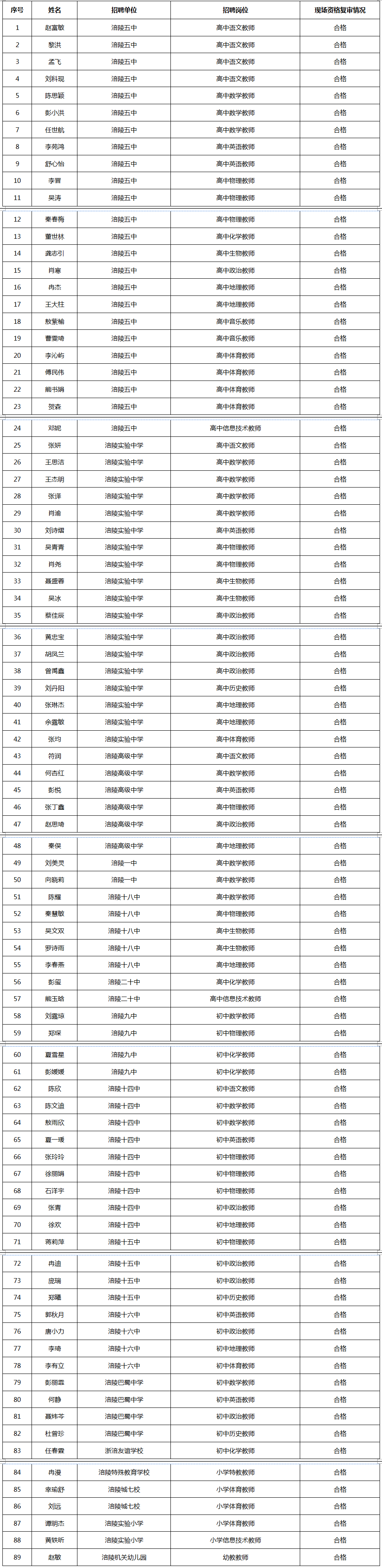 重庆市涪陵区事业单位2022年第一季度考核招聘工作人员 进入面试环节人选名单(附件2岗位)