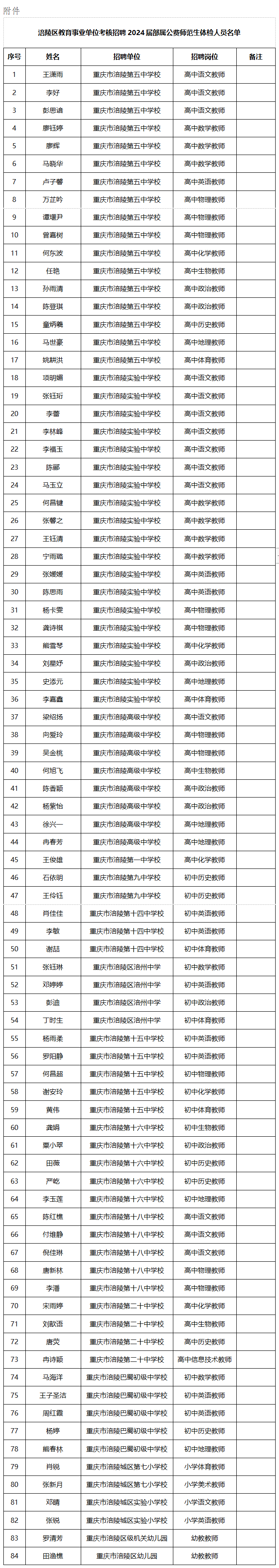 附件:涪陵区教育事业单位考核招聘2024届部属公费师范生体检人员名单