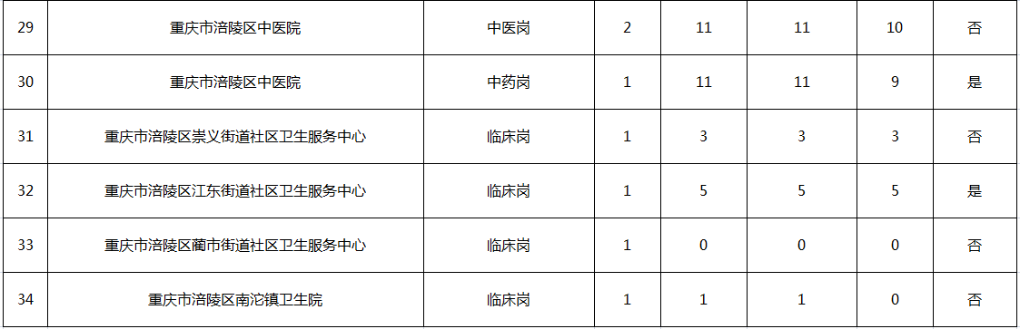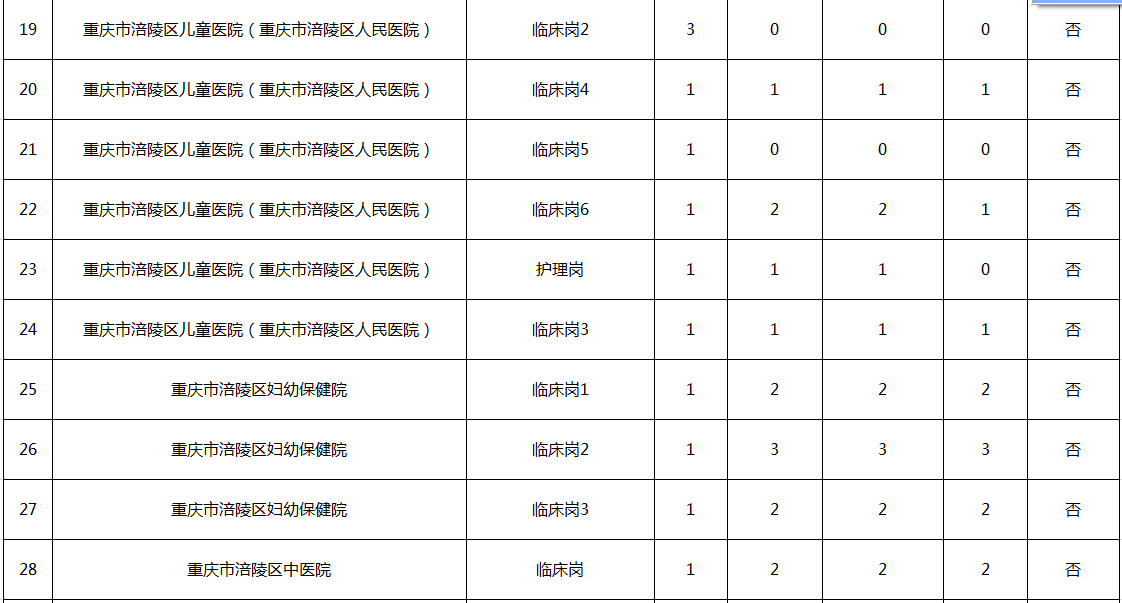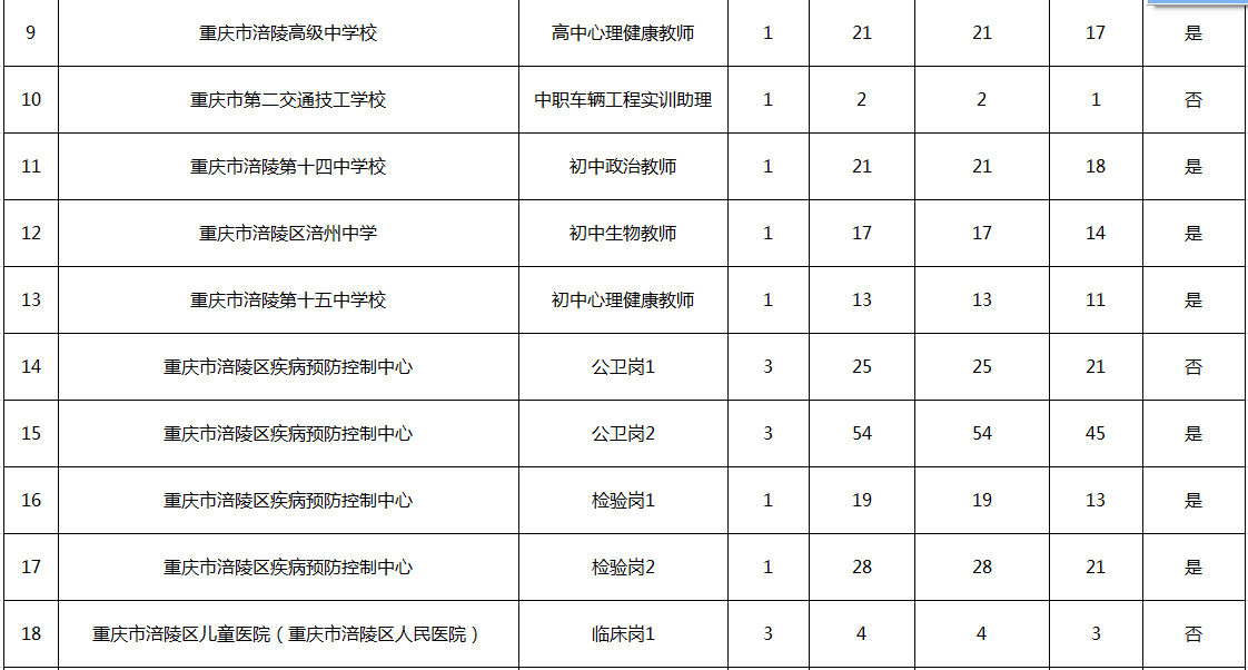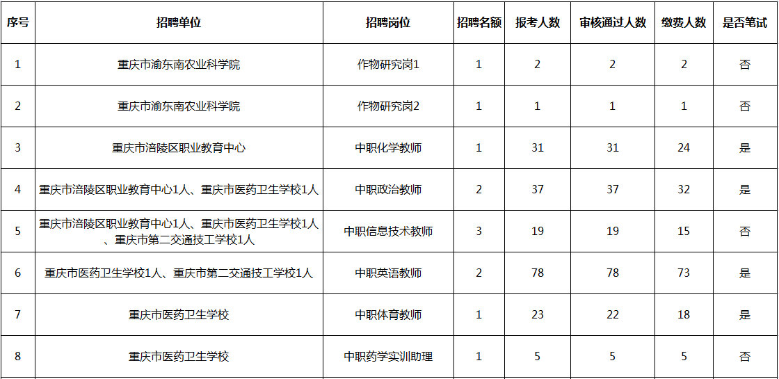 重庆市涪陵区事业单位2024年第二季度考核招聘紧缺优秀人才报名统计