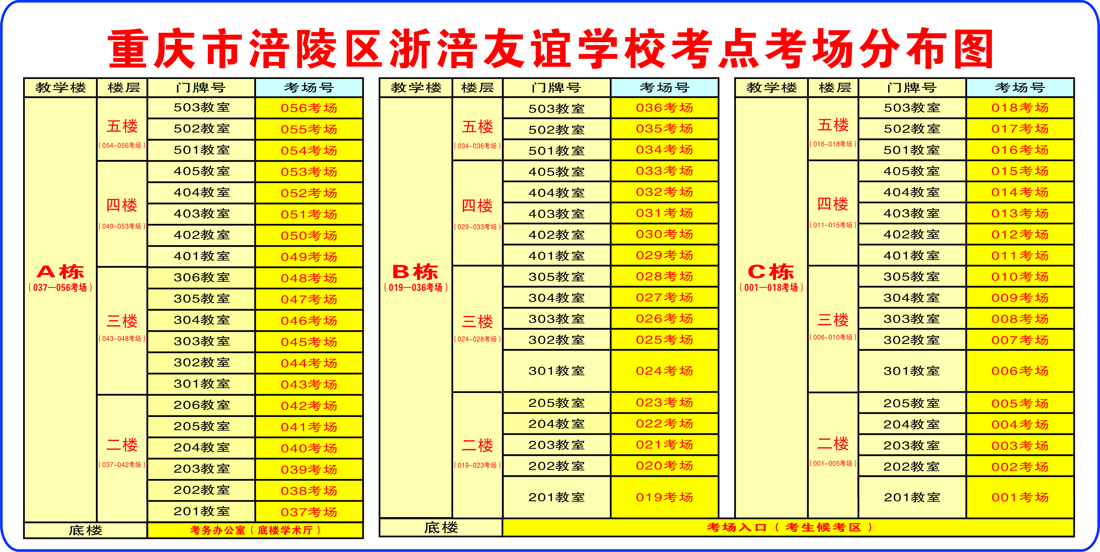 2.考场安排如下: