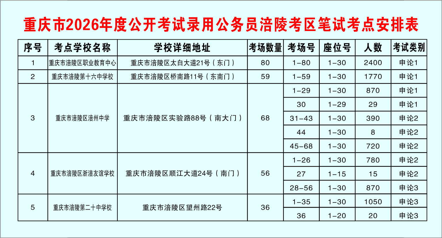 重庆市2026年度公开考试录用公务员公共科目笔试将于3月14日(星期六)举行,涪陵考区热忱欢迎各位青年才俊的到来!为方便大家顺利参考,提前规划行程,现将笔试相关事宜温馨提示如下: