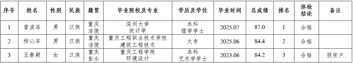 根据街道招聘公告有关规定,经报名、资格审查、考试、体检等环节,现将马鞍街道2025年招聘公益性岗位拟聘用人员公示如下。