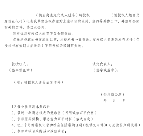 各个供应商可派1-2名代表参与谈判,至少1人应为法定代表人或具有法定代表人授权委托书的授权代表。