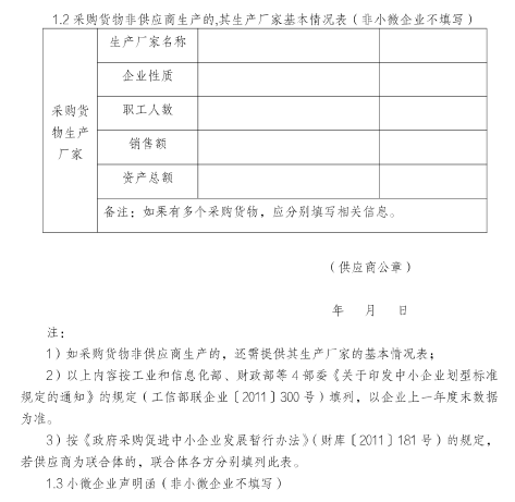 1. 供应商及采购货物生产厂家基本情况表、小微企业声明函