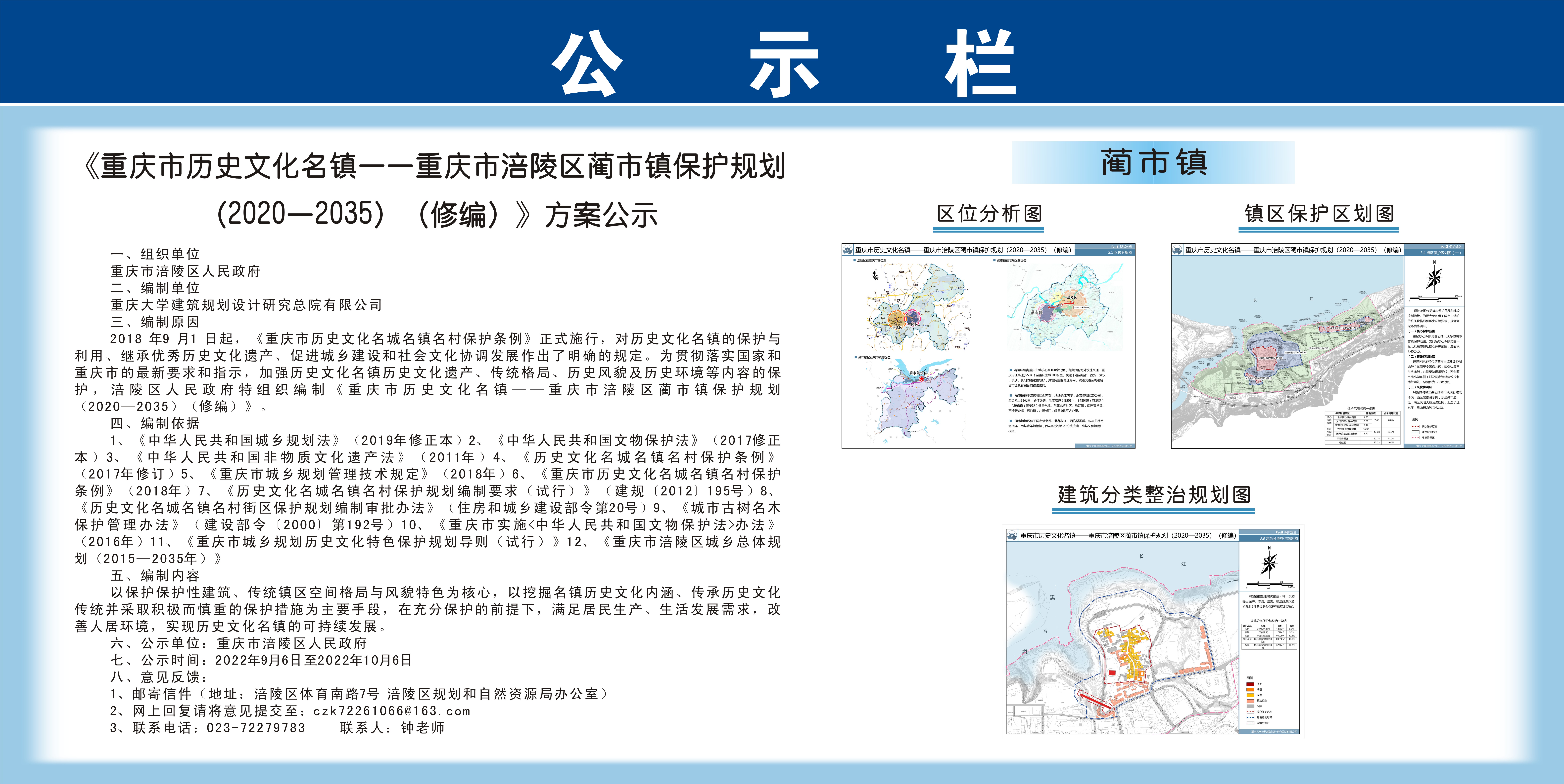 重庆市涪陵区规划和自然资源局关于《重庆市历史文化名镇—重庆市涪陵区蔺市镇保护规划(2020—2035)(修编)》方案公示