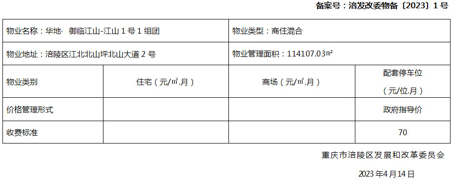 物业服务收费备案表(华地·御临江山-江山1号1组团)