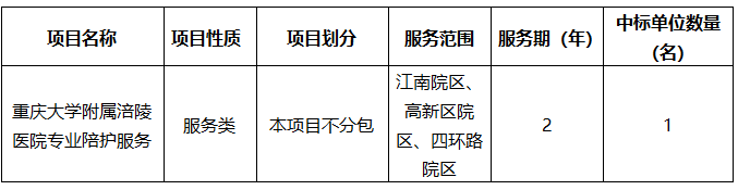 为规范医院陪护管理,改善住院患者就医体验,重庆大学附属涪陵医院拟通过竞争性比选确定一家专业陪护服务公司为住院患者提供陪护服务,特邀请符合相关经营资质、经营范围和守法诚信的公司前来报名投档。