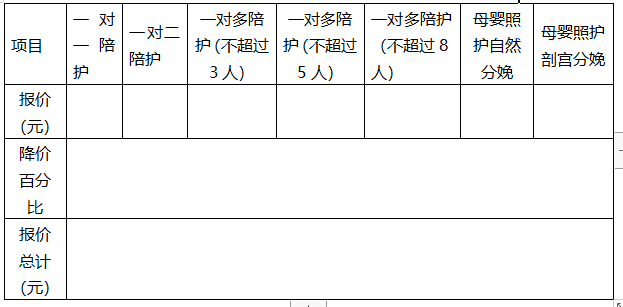 (二)投标人陪护服务实际报价模版(单位:元)