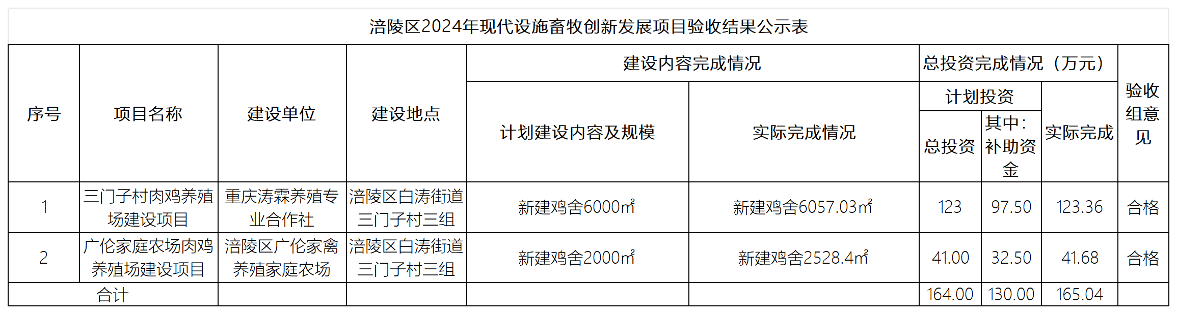附件:涪陵区2024年现代设施畜牧创新发展项目验收结果公示表