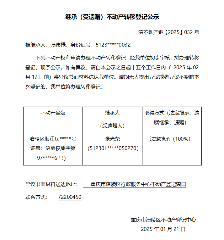 张德禄涪不动产继【2025】032号