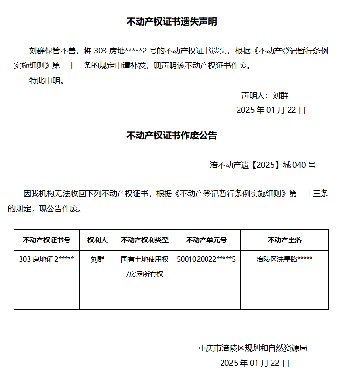 刘群涪不动产遗【2025】城40号