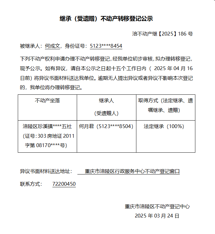 何成文涪不动产继【2025】186号