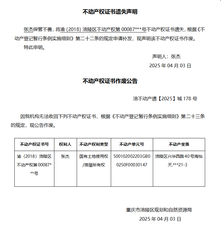 张杰涪不动产遗【2025】城178号
