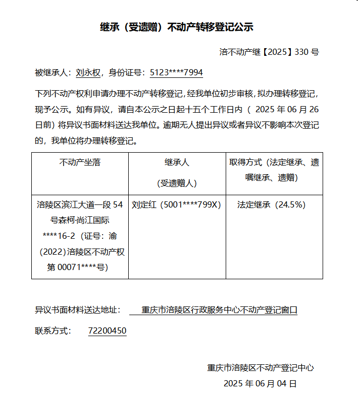 刘永权涪不动产继【2025】330号