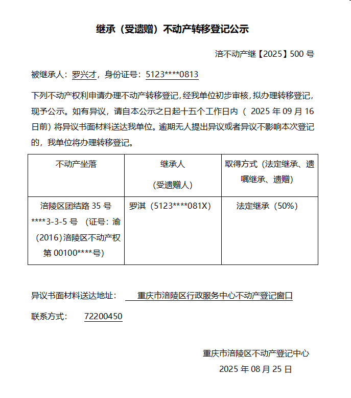 罗兴才涪不动产继【2025】500号